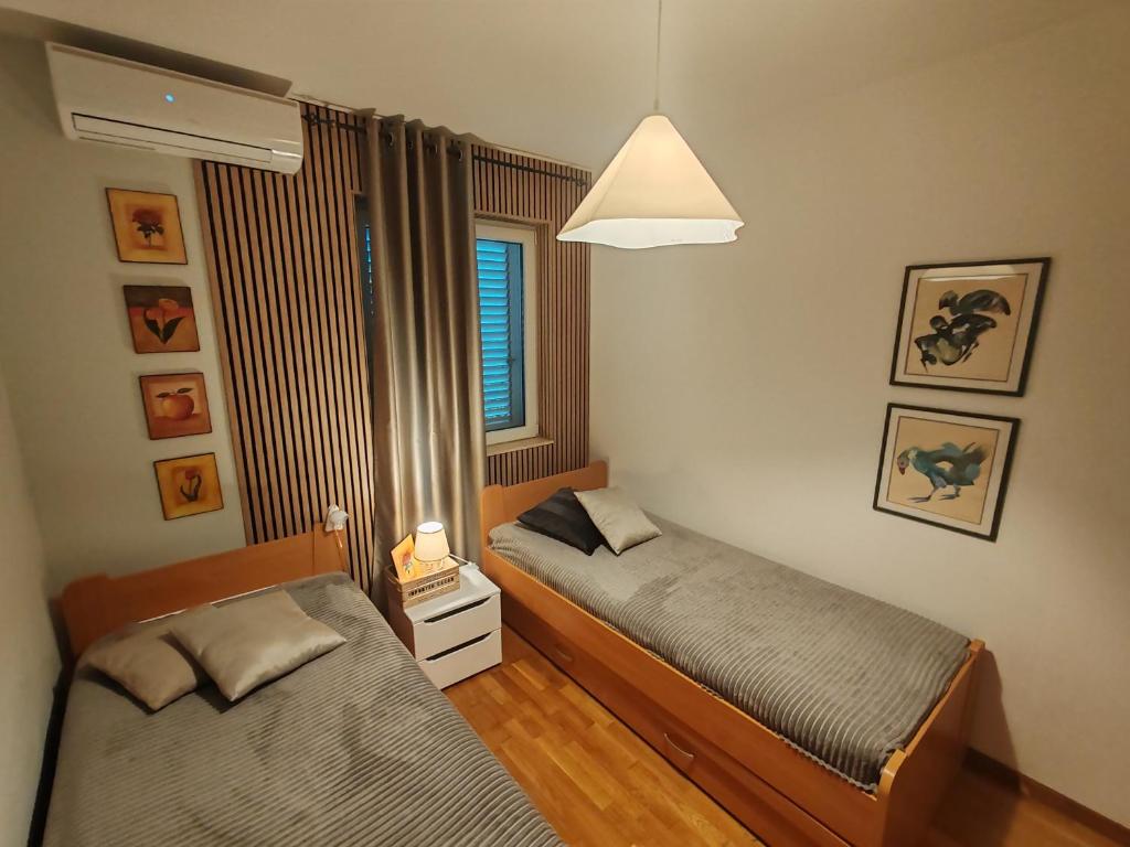 Apartman se sastoji od dve spavaće sobe, kupatila, kuhinje, dnevnog boravka sa trpezarijom i terase sa pogledom na more. Apartman je full opremljen.