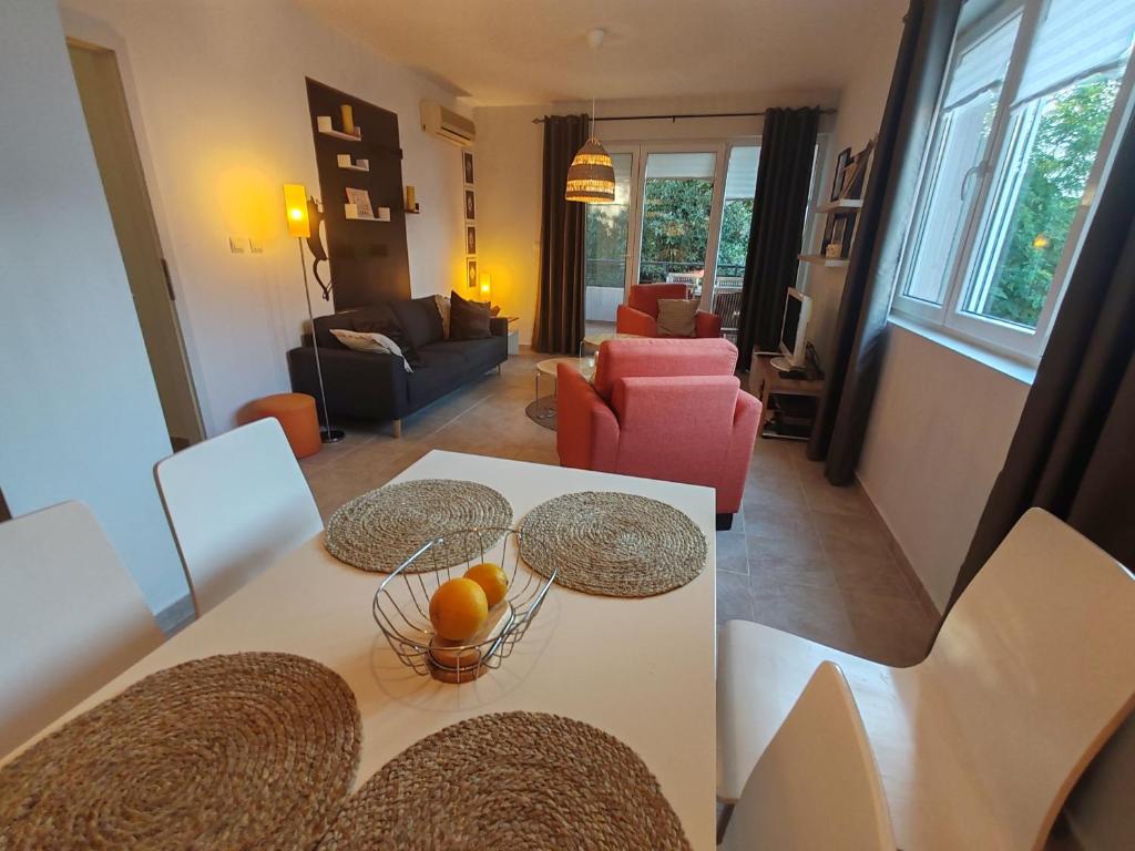 Apartman se nalazi u kompleksu od 17 apartmana sa puno zelenila, uz maksimalnu privatnost dok pogled na more daje posebnu čar.